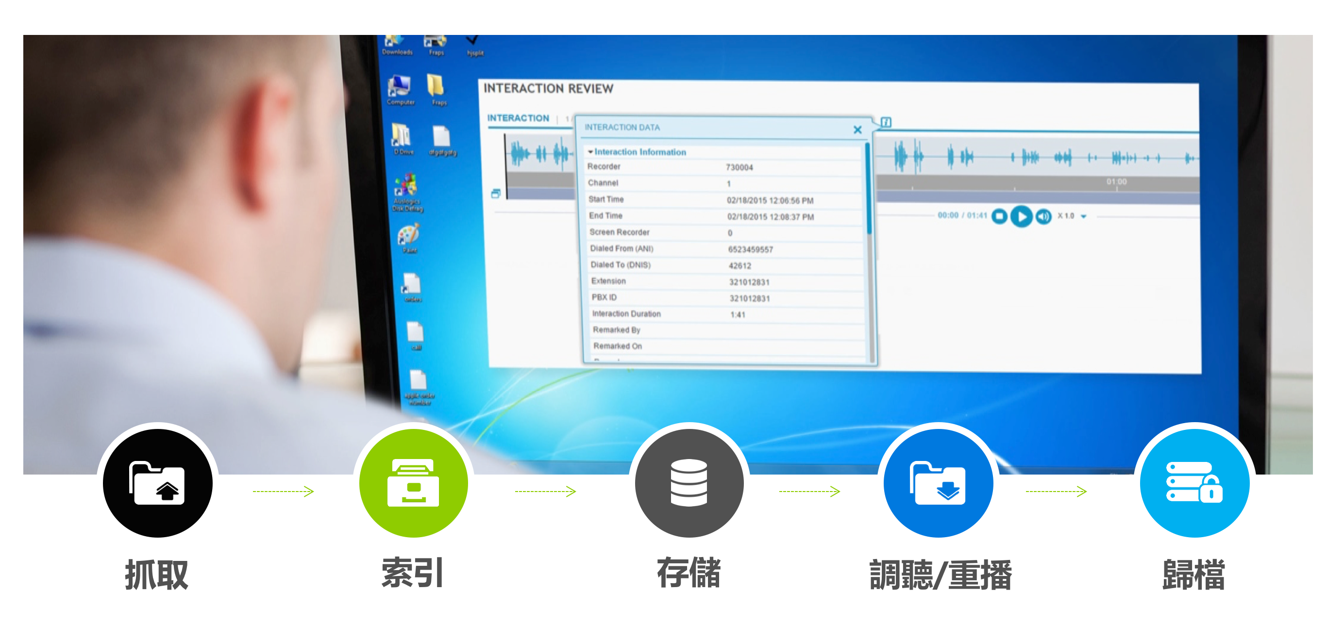 - 南訊 Verint 多媒體錄製/錄音系統,完美整合其它進階功能如:語音分析、文字分析、QM 自動質檢、客服桌面行為分析、聲紋辨識...等。