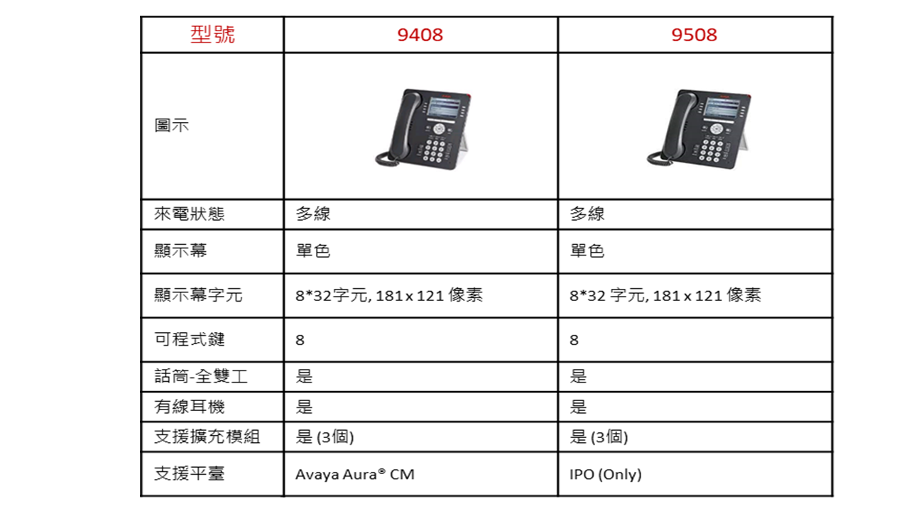 Similar functionality to the 9408, designed specifically for Avaya IP Office platform users.